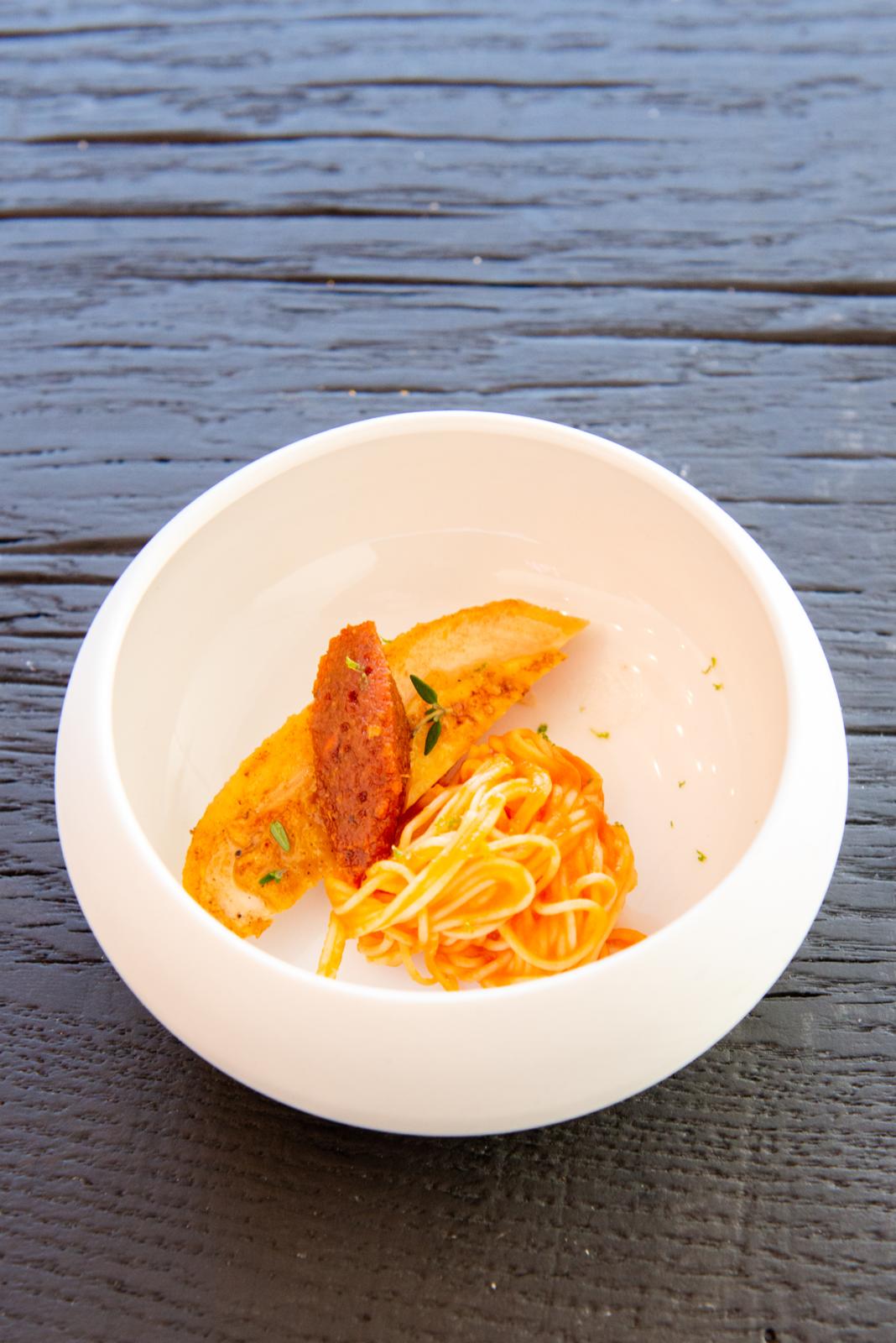Schorenaere kip // natuurhoning / limoenrasp /tijm / pasta